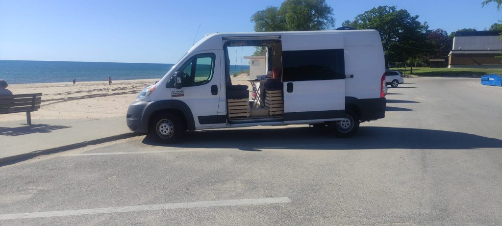 In Menominee wollen wir übernachten. Wir parken erstmal in der Nähe von einem Strändchen und der Marina. Alles sehr ruhig… die Sonne scheint und unsere Akku’s sind schnell voll. Menominee scheint ein wenig in de Jahren gekommen zu sein. Sehr viel leerstand, wenig Geschäfte und wenig Touristen (kaum Restaurants, Bars und Hotels). Später wurden wir von netten Anwohnern angesprochen .. wo wir her kommen, ob wir da übernachten (wir hatten uns schon ein besseren Platz ausgesucht) und was wir vorhaben. Während dem Gespäch wurde deutlich, dass die beide Herren ziemlich stoned waren. Es wurde deswegen ein ziemlich einseitiges Gespräch wobei viel um eigene Witzchen gelacht wurde. Immerhin haben sie angeboten, um auf deren Privatgrundstück zu parken.