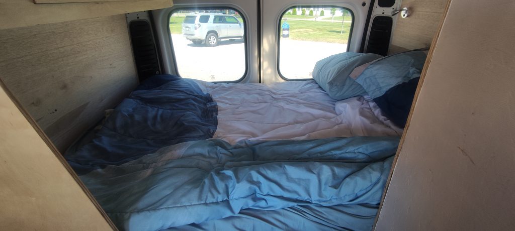 Nach 2 Stunden waren wir fast durch Chicago… da haben wir in der Stadt unsere Lebensmittel eingekauft und und haben auswärts gegessen. Da der Stau immer noch da war haben wir am Parkplatz vorm Restaurant unsere erste Nacht im Auto verbracht. Alles bestens.