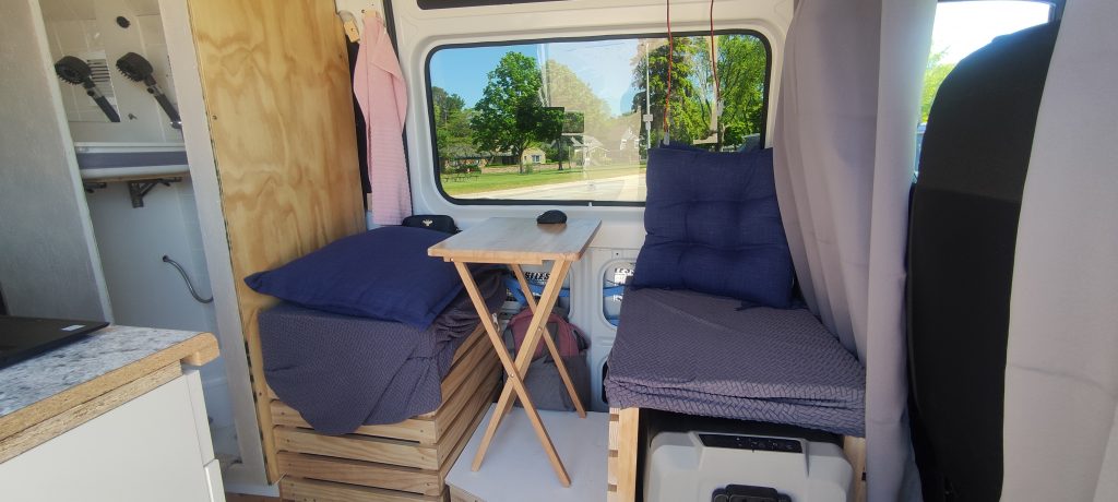 Die Trennung zwischn Bett und Küche wird verschraubt.
