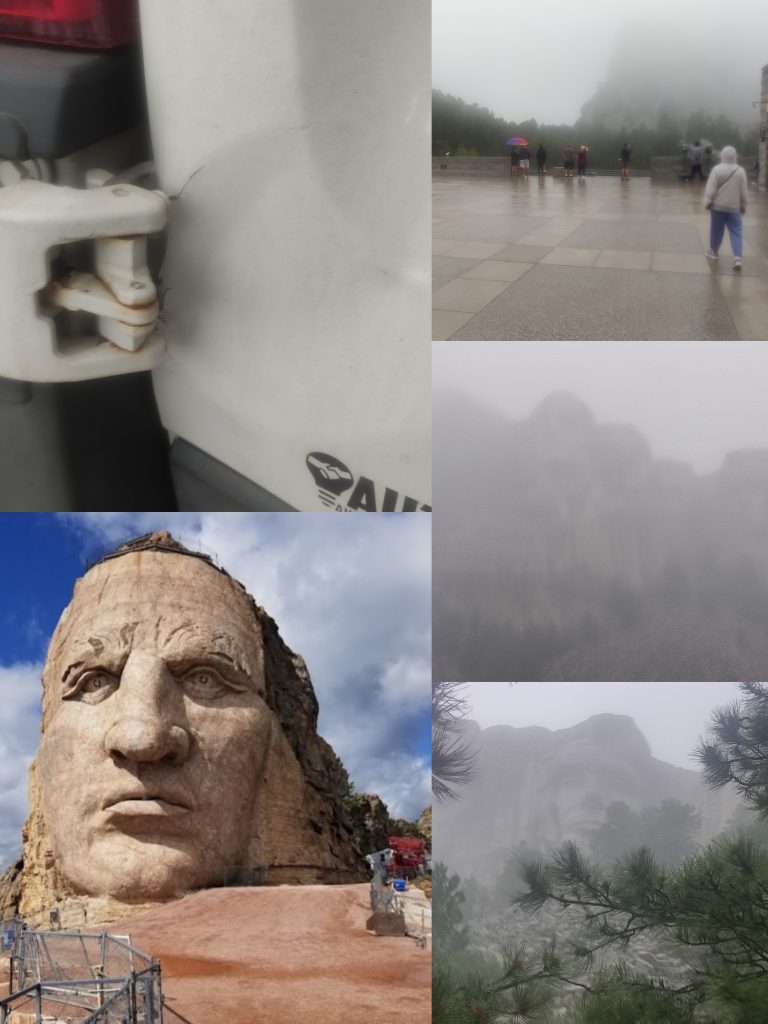 Stunde später sind wir wieder unterwegs. Der Regen war nicht lokal. Es gibt etliche „Flood-warnungen“ (nicht auf der Autobahn). Irgendwann verpassen wir eine Abfahrt und müssen Schleichwege nehmen. Auf „unpaved“ Strassen wurde lapidar mit Schildern „Warning Water“ gewarnt… Da blieb mir schon mal nichts anders übrig als… anhalten, aussteigen, hose hochkrempeln und gucken wie tief es ist.