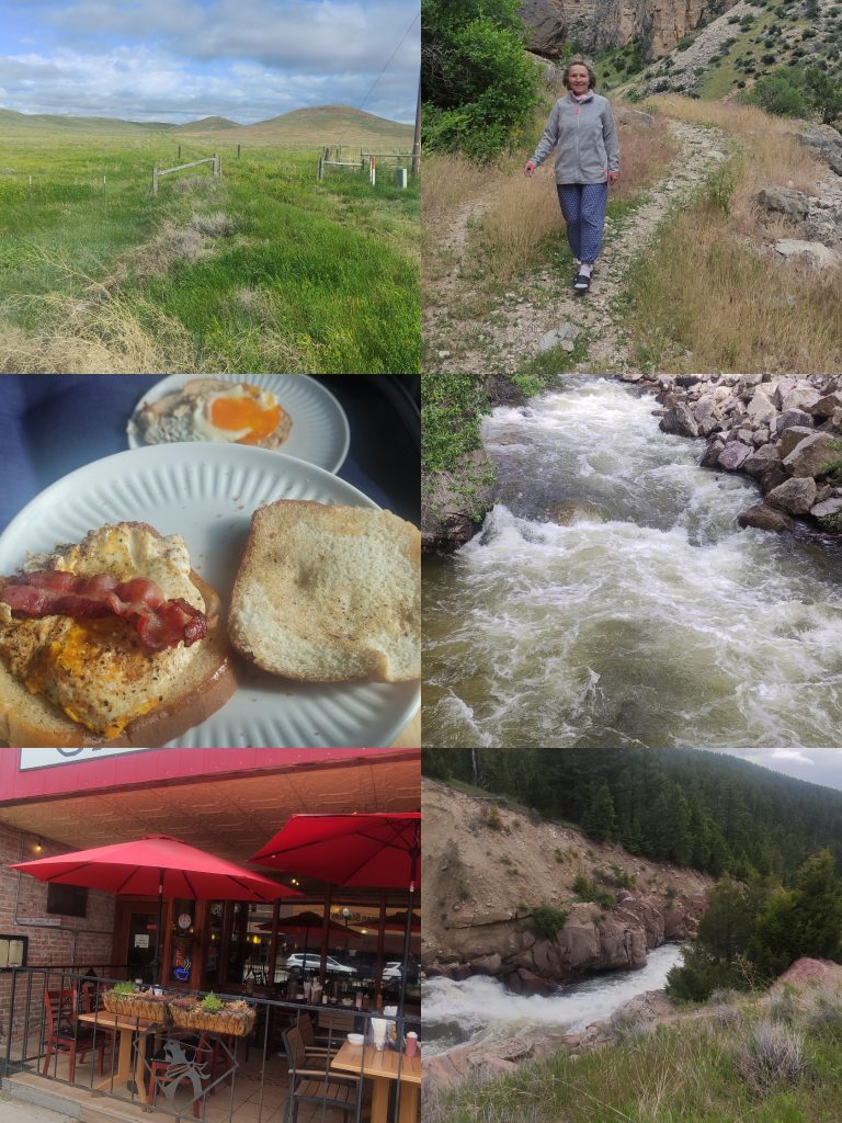 Wir frühstücken bei Prairie Rosie Cafe. Ein typisch Amerikanisches Frühstück:  Kaffee zum Abwinken, Hash Brown, over easy Ei (oder sunnyside up), Bacon (Ham oder Sausage) und  Toastbrot.  Immer wieder lecker.