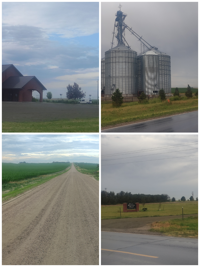 Zum spazieren schlafen nehmen wir eine (beliebige) Abfahrt. Dort finden ziemlich schnell eine Kirche von den Mennoniten. Die haben einen riesen (leeren) Parkplatz. Wir hoffen, dass die uns in Ruhe lassen (auf Privatgeländern darf man natürlich nicht ohne Zustimmung übernachten).
